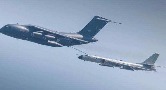 解放军空军玩了一把"空中续杯"——用运20改的运油20加油机给轰6轰炸机空中加油,这操作直接把中国轰炸机的作战半径怼到了第二岛链。